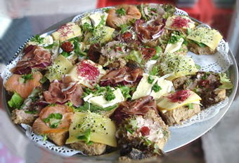 Om u een voorbeeld te geven van de mogelijkheden ziet u hier enkele foto's van een uitgebreid tapasbuffet, dat in drie gangen werd geserveerd.